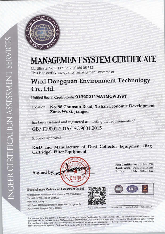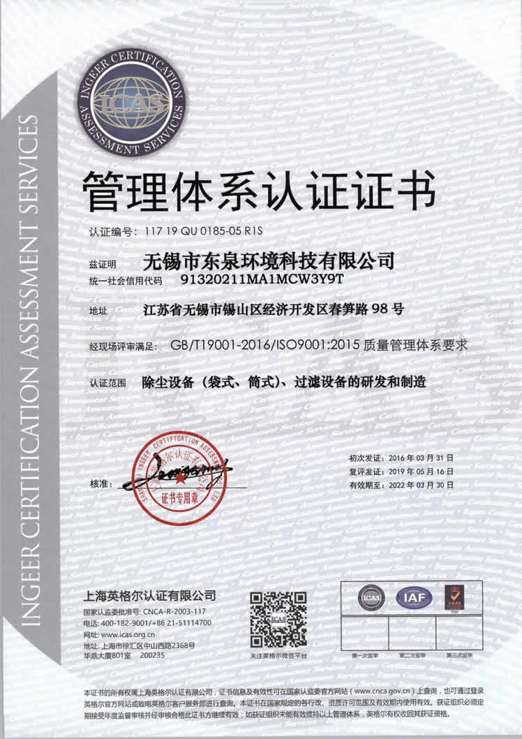 無(wú)錫市東泉環(huán)境科技有限公司成立于2014年,坐落在工業(yè)發(fā)達(dá)、風(fēng)景秀麗,素有“太湖明珠”之稱的無(wú)錫,公司主要從事各類機(jī)電設(shè)備、工業(yè)環(huán)保設(shè)備、過(guò)濾設(shè)備、過(guò)濾原件、化工機(jī)械設(shè)備及其各類配套件的技術(shù)咨詢、研發(fā)、制造、銷售和安裝服務(wù)等。 公司經(jīng)過(guò)幾年的發(fā)展已經(jīng)擁有3500m2的生產(chǎn)基地。年產(chǎn)各種過(guò)濾除塵設(shè)備2500臺(tái)/套,過(guò)濾元件15000支左右。 公司不斷研發(fā)具有自主知識(shí)產(chǎn)權(quán)的過(guò)濾分離系統(tǒng),目前已擁有多項(xiàng)國(guó)內(nèi)專利,2015年通過(guò)ISO9001質(zhì)量管理體系認(rèn)證、2020年通過(guò)美國(guó)ASME "U"資質(zhì)認(rèn)證,2020年通過(guò)國(guó)家級(jí)高新技術(shù)企業(yè)認(rèn)證等。
